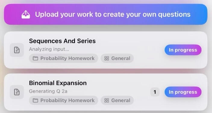 Upload homeworks, worksheets, rubrics, or past papers to get questions generated for you at your level, topic and difficulty.
